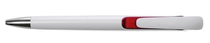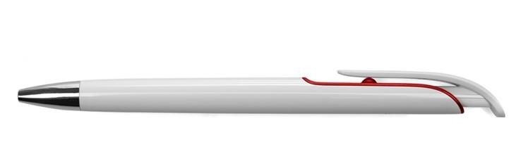 Cuerpo plástico blanco con detalles en color bajo el clip, puntera cromada